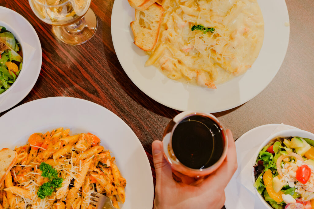 For February, their $35 Date Night Special offers a choice of creamy garlic pasta or tomato and herb pasta, finished with chicken or shrimp, plus a house salad and a chardonnay or cabernet sauvignon from Browne Family Vineyards.